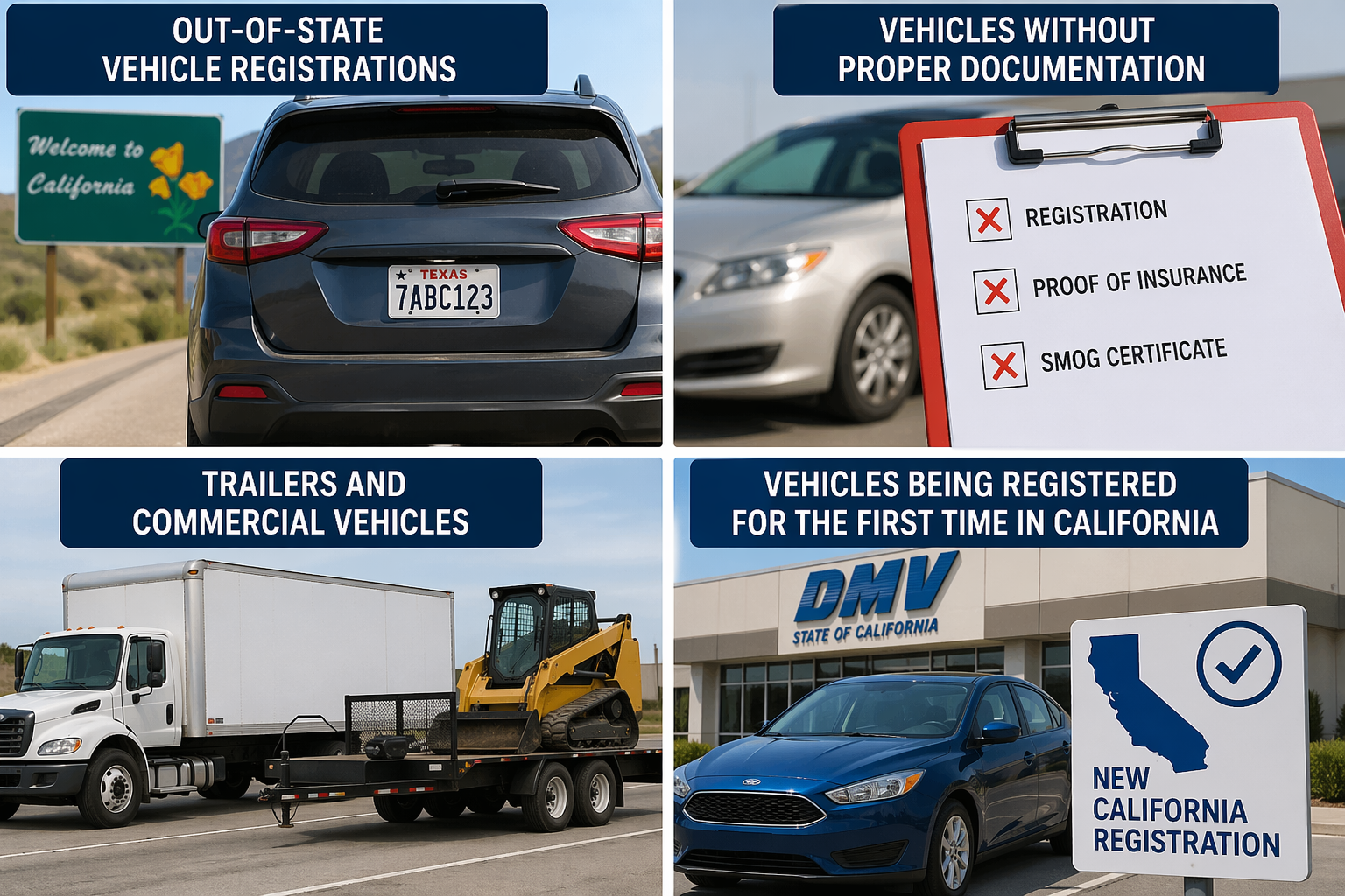 TrucksVIN inspections required for vehicles coming from another state before they can be registered in California.